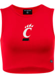 Elevate your tailgating style with this Cincinnati Bearcats Womens Tank Top. Stay fashionable and comfortable in the refreshing Red Cut Off Sleeveless Shirt. Discover the enticing details of this Cincinnati Tank Top, showcasing a screen print team logo on center chest that's sure to impress.