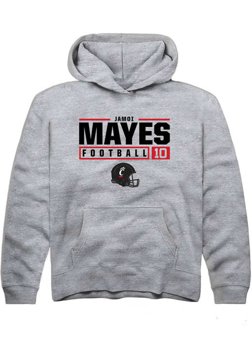 Jamoi Mayes Rally Youth Grey Cincinnati Bearcats NIL Stacked Box Long Sleeve Hooded Sweatshirt