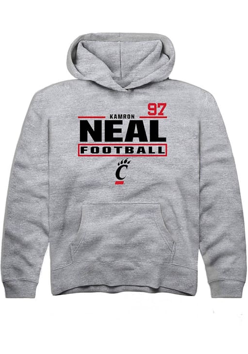 Kamron Neal Rally Youth Grey Cincinnati Bearcats NIL Stacked Box Long Sleeve Player Hoodie