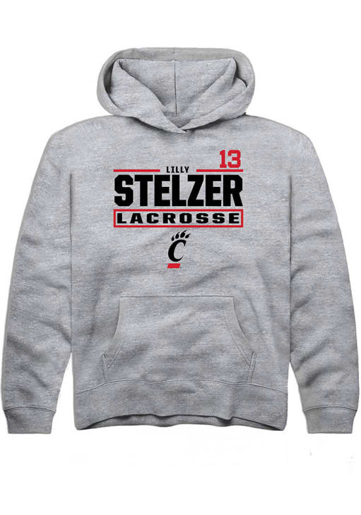Lilly Stelzer Rally Youth Grey Cincinnati Bearcats NIL Stacked Box Long Sleeve Hooded Sweatshirt