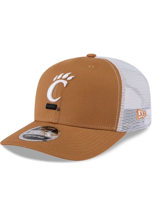 Product Details Product Details New Era Evergreen 9SEVENTY Stretch Snap TruckerFront embroidered team logoTrucker mesh on side and back panelsLeft side New Era flagPlastic snap closurePOLYESTERCurved BillLow CrownStructuredWipe clean with cloth or cleaning kitImported Officially Licensed This Tan Bearcats Adjustable Hat features a front embroidered team logo.