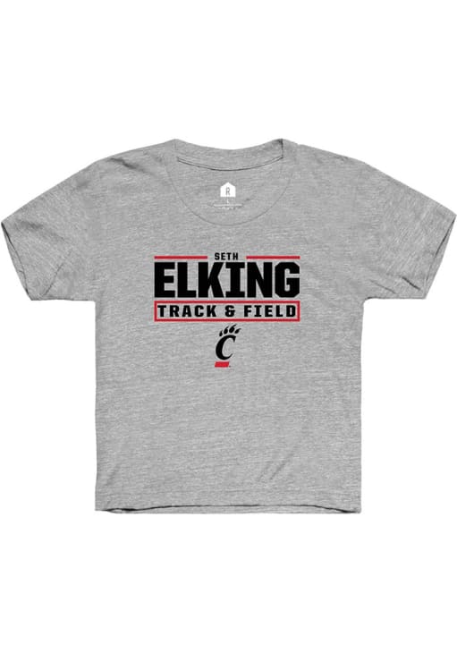 Seth Elking Rally Youth Grey Cincinnati Bearcats NIL Stacked Box Short Sleeve T-Shirt