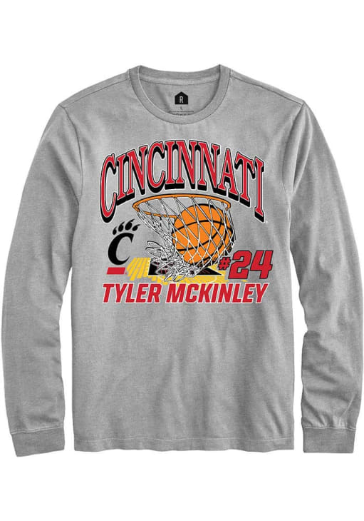 Tyler McKinley Rally Mens Grey Cincinnati Bearcats NIL Name Number Net Tee