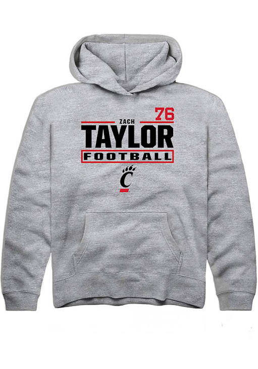 Zach Taylor Rally Youth Grey Cincinnati Bearcats NIL Stacked Box Long Sleeve Player Hoodie